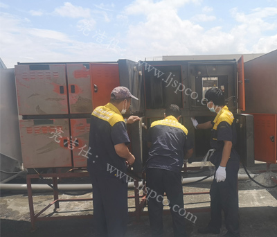 众所周知,长期使用的油烟机罩和抽风机、空气净化器、抽烟管道等如果不经常清洗,会有很多油渍残留在烟机上和烟道表面,时间久了会形成油垢,这些油垢使用简单的清洗方法是处理不掉的,这样会影响油烟机和烟道的使用,使烟流不易排除。本公司采用高压射流和强力化油剂,对烟道进行除油污处理后,再做保养。可使油烟气流明显好转,还可以在表面形成一层保护膜使油渍不易残留在风管表面。我们使用人工铲除油垢配合超强金属专用清洁剂,对油烟机表面油污清除效果显著,无毒、无味、不伤金属和瓷面。我司现已完成上百个大型油烟机的清洗工作。