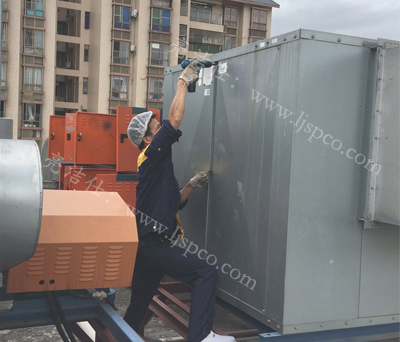 众所周知,长期使用的油烟机罩和抽风机、空气净化器、抽烟管道等如果不经常清洗,会有很多油渍残留在烟机上和烟道表面,时间久了会形成油垢,这些油垢使用简单的清洗方法是处理不掉的,这样会影响油烟机和烟道的使用,使烟流不易排除。本公司采用高压射流和强力化油剂,对烟道进行除油污处理后,再做保养。可使油烟气流明显好转,还可以在表面形成一层保护膜使油渍不易残留在风管表面。我们使用人工铲除油垢配合超强金属专用清洁剂,对油烟机表面油污清除效果显著,无毒、无味、不伤金属和瓷面。我司现已完成上百个大型油烟机的清洗工作。