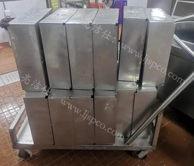 先由清洗人员用专业工具把烟罩及篦子表面较厚的油污除去,然后涂上环保高效的除油剂,待油污充分溶解后,用高温高压清洗机进行清洗。最后用毛巾擦干烟罩表面,使之达到光洁明亮的效果。待篦子晾干后装回原位。